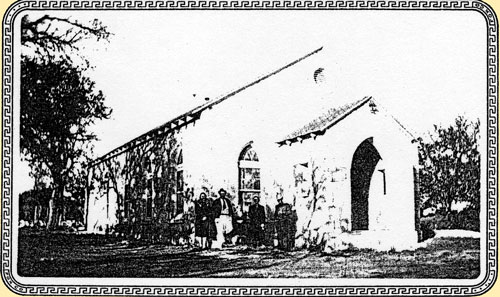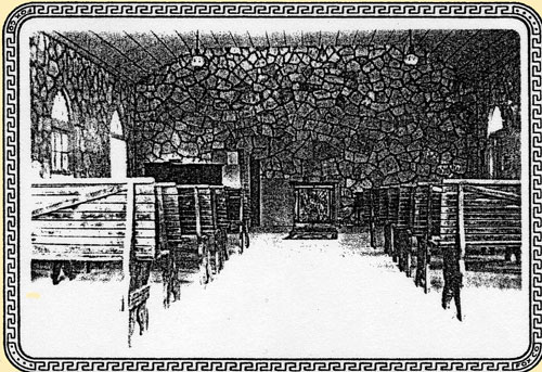 The first wedding in the church was a double ceremony with Agnes Autrey and Thomas C. Marmon as one couple and Maggie Autrey and Fred Tomasini as the other couple. The two brides were sisters. An amusing incident occurred in that the grooms wore the same suit. While one couple was being married, the other waited outside the building. Then the second groom changed his clothes, and he and his bride were joined in wedlock (30). Leona Marmon and Clarence Vaughn were the last couple to be married in this church. The bride is a daugher of Mr. and Mrs. Thomas C. Marmon, one of the first couples. The last funeral to be held from the old church was that of Fred Tomasini, one of the first bridegrooms (31). |